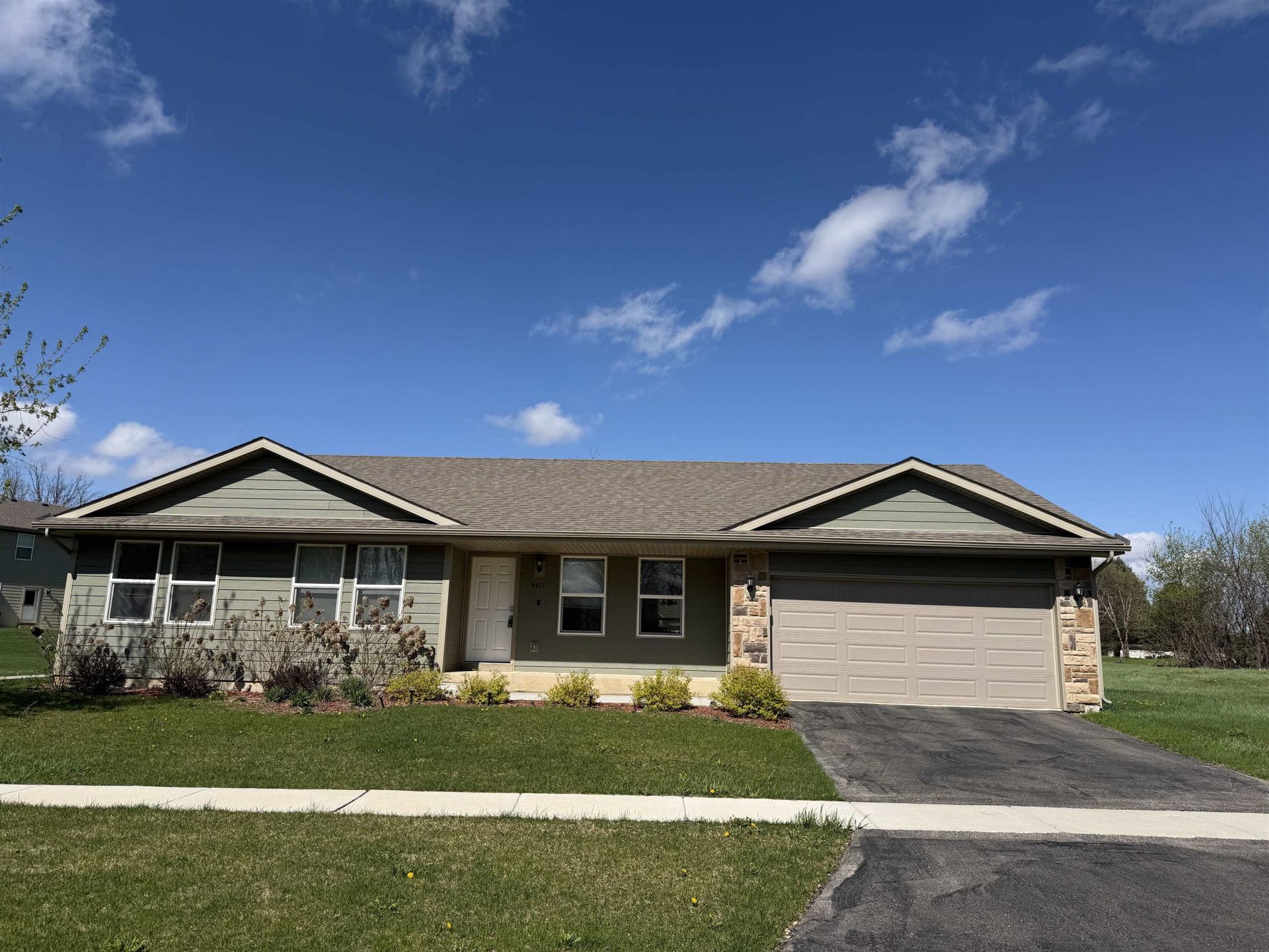 Desirable location in Deer Hills Subdivision! This beautiful newer ranch, built in 2023, offers 1,616 square feet of thoughtfully designed living space, featuring 3 bedrooms, 2 full baths, and a 2-car garage. The kitchen is equipped with white shaker-style cabinets, granite countertops, and a large pantry, with all appliances included. Durable LVP flooring runs throughout the home, enhancing the open-concept great room and dining area-perfect for everyday living and entertaining. The spacious primary suite includes a walk-in closet and a private bath with a dual granite vanity. Convenient main floor laundry adds to the home's functionality. The lower level, complete with an egress window, provides excellent potential for additional living space. A rear covered porch finishes off this inviting home, offering a great spot to relax and unwind.